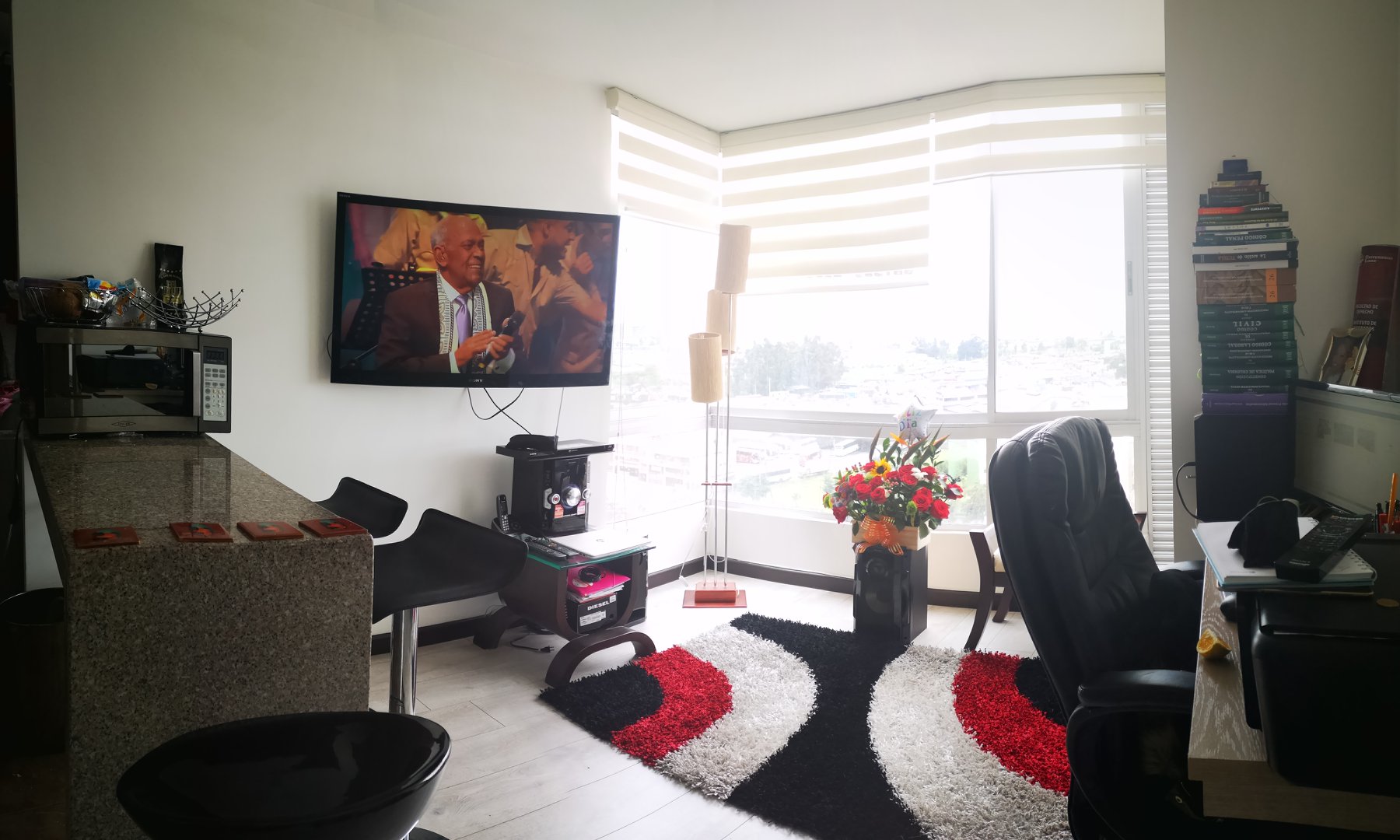 Apartamento de Dos alcobas, dos baños (auxiliar y en alcoba principal), pisos en madera laminada en zona social y alcobas y en cerámica en cocina y baños, closet y walk in closet, cocina integral tipo americano, excelente vista, muy iluminado. Parqueadero propio, Depósito, Gimnasio, sauna, cancha de squash, cancha de futbol 5, salón social, sala de juntas, parque infantil, zona de BBQ, terraza panorámica en piso 16, parqueaderos de visitantes. Vías principales cercanas: calle 26, avenida Esperanza, avenida Boyacá, Av Ciudad de Cali, Calle 13, ruta de alimentadores para Transmilenio, colegios, supermercados y centros comerciales (Hayuelos, Multiplaza, Edén, Nuestro Bogotá), a 10 minutos del aeropuerto. Cinco años de construido, único dueño, dos ascensores, entradas vehiculares, peatonales y de mascotas con chip de seguridad, circuito cerrado, shut de basuras, cerca eléctrica de seguridad.